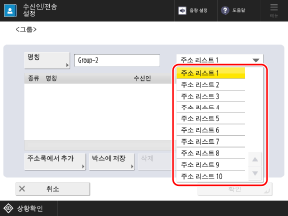 그룹으로 묶을 수신인이 등록되어 있는 주소 리스트를 선택합니다.