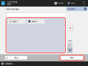 * 확인 화면을 표시하도록 구성된 수신인을 그룹에 등록하면 그룹을 수신인으로 지정하지 못하여 그룹에 데이터를 송신하지 못하게 됩니다.