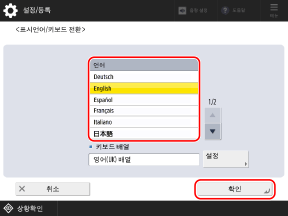 화면 표시언어를 변경할 수 있습니다. 사용되는 언어에 따라 화면에 표시되는 키보드 배열을 변경할 수 있습니다.