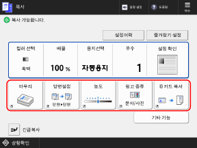 복사 화면의 버튼이 재배열됩니다.