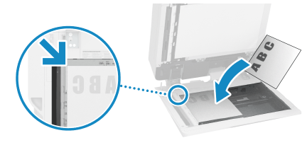 스캔할 면을 아래로 향하게 하여 원고를 원고대 위에 놓고 원고의 모서리를 원고대의 왼쪽 상단 모서리에 맞춥니다.