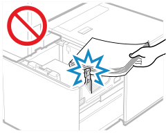 용지 적재 영역에 용지 이외의 어떤 것도 넣지 마십시오. 오작동이 야기될 수 있습니다.