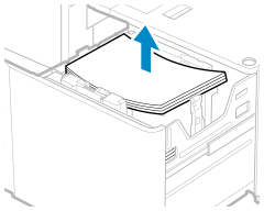 습도가 낮은 환경에서 POD Deck Lite-C에 용지를 적재하면 용지걸림이 발생할 수 있습니다. 용지걸림이 발생한 경우 제어판 화면의 지시에 따라 용지걸림을 제거하십시오. 또한, 적재된 용지가 말리지 않도록 확인하십시오.