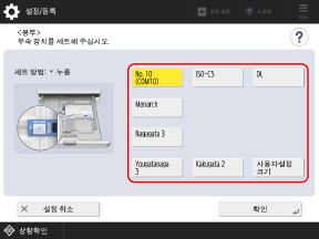 크기가 자동으로 감지되지 않는 용지가 적재된 경우에는 [인식 불가 정형 크기]를 눌러 적재된 용지의 크기를 선택합니다.