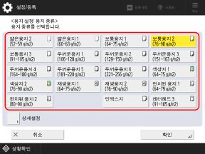 * 적재된 용지 종류가 목록에 표시되지 않는 경우 해당 용지 종류를 등록합니다.