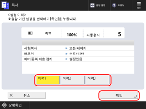 [설정이력]을 눌러 이전에 복사에 사용했던 설정을 불러올 수 있습니다.