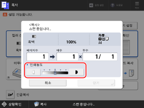 슬라이더를 좌우로 움직여 농도 설정을 변경할 수 있습니다.