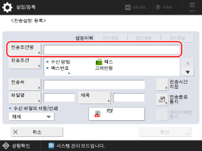전송 조건을 등록하는 화면이 표시됩니다.