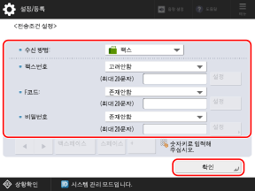팩스번호(발신인의 팩스번호), 하위주소 및 비밀번호를 조건으로 설정할 수 있습니다.