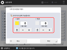 [앞면] 또는 [뒷면] 버튼을 눌러 선택한 다음 값을 입력합니다.