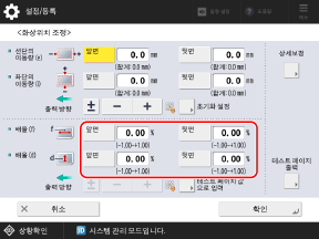 배율, 좌단 위치 조정 또는 선단 위치 조정을 수행하는 경우