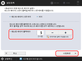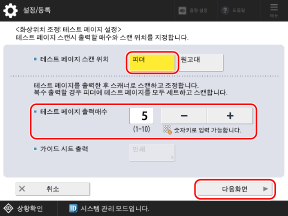 출력할 테스트 용지 매수를 설정한 다음 [다음화면]을 누릅니다.