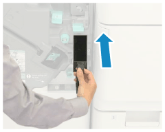 스테이플 피니셔 또는 제본 피니셔의 펀치 폐물이 가득 차서 펀치 폐물을 버리라는 아이콘이 제어판에 표시되면 펀치 폐물을 버립니다.