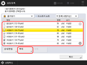 [용지종류의 관리설정] 화면이 표시됩니다.