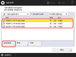 리스트에서 사용자 설정 용지를 선택하고 [상세/편집]을 누릅니다.