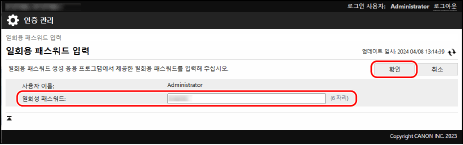사용자명 "Administrator"로 로그인하는 경우 기본 비밀번호 "7654321"을 새 비밀번호로 변경합니다. [인증 사용자 등록/편집]