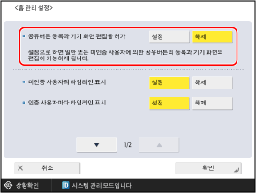 [개인 화면의 버튼 이동을 허가]가 [해제]로 설정되면 이전에 옮긴 버튼의 표시 위치가 유지됩니다.