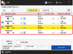* 여러 문서를 선택하면 문서가 선택된 순서대로 인쇄됩니다(확인란 번호순).