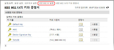 [IEEE 802.1X의 키와 증명서] 화면이 표시됩니다.