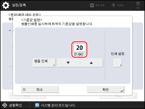 샘플이 인쇄되고 [기준값 설정] 화면이 다시 표시됩니다.