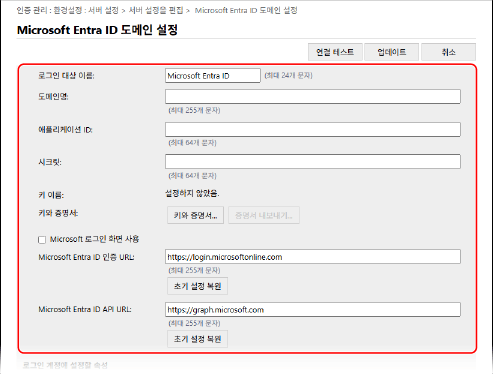 [자동클리어 시간][Microsoft Entra ID 인증 URL] 및 [Microsoft Entra ID API URL]