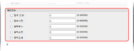 인쇄하거나, 스캔하거나, 복사할 수 있는 페이지 수를 제한하려면 원하는 항목을 선택하고 최대 페이지 수를 입력합니다.