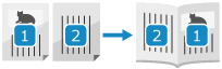 제본 인쇄를 수행하는 경우 용지를 쌓아 반으로 접어 제본이 되도록 페이지가 배열되어 인쇄됩니다. 제본을 우측으로 펼칠지, 좌측으로 펼칠지 여부도 설정할 수 있습니다.