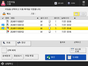 이 화면을 사용하여 인쇄하거나 송신할 파일을 선택합니다.