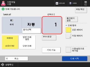 6단계에서 여러 파일을 선택한 경우에는 [부수 변경]을 누르고 인쇄부수를 입력합니다.