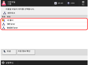 네트워크상의 다른 기기나 파일 서버(Windows 서버)에 있는 고급 박스에 저장된 PDF, XPS, JPEG, TIFF 파일을 제어판을 사용하여 기기로 직접 인쇄할 수 있습니다.