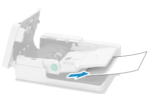 피더 커버 안쪽에 원고가 걸린 경우 화살표 방향으로 부드럽게 당겨 빼냅니다.