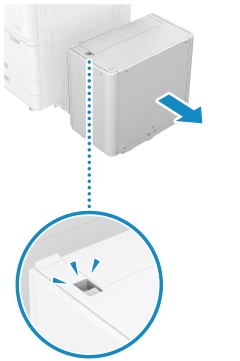 해제 레버를 눌러 POD Deck Lite-C 또는 Paper Deck Unit-E를 본체에서 꺼냅니다.