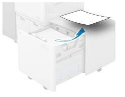 POD Deck Lite-C 또는 Paper Deck Unit-E에 걸린 용지를 제거합니다. 제어판 지시에 따라 용지걸림 위치를 확인하고 걸린 용지를 제거하십시오.