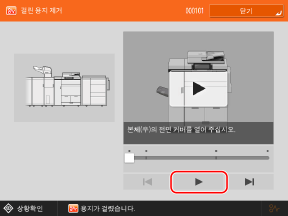 * 걸린 용지나 스테이플을 제거하기 전까지 이 화면이 반복해서 표시됩니다. [닫기]를 눌러 화면을 잠시 닫고 다른 작업이나 설정을 수행할 수 있습니다.