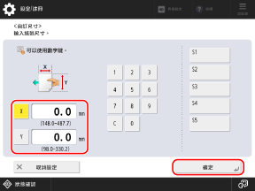 在 [X] 和 [Y] 中輸入值,然後按下 [確定]。