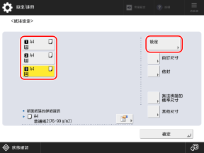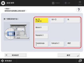 如果未自動偵測已裝入紙張的尺寸,請按下 [無法辨識的標準尺寸] 選擇已裝入紙張的尺寸。