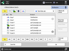 Podeu especificar les destinacions desades a la llibreta d'adreces recuperant la llibreta d'adreces a les pantalles de lectura (Llegir i enviar) o de fax.