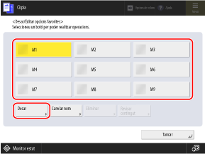 Fins i tot si s'elimina la informació desada d'"Opcions favorites", el nom del botó no s'elimina i no torna a l'opció predeterminada. Premeu [Canviar nom] per canviar el nom del botó, segons sigui necessari.
