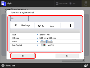 Quan utilitzeu les funcions de lectura i còpia, entre d'altres, recupereu l'opció segons la vostra finalitat entre les que heu desat a "Opcions favorites".