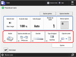 Podeu personalitzar el disseny de les opcions d'ús freqüent en cada pantalla de funció per accedir ràpidament a les opcions.