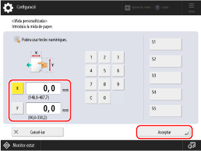 Si no coneixeu la mida (longitud del costat) del paper o voleu imprimir-lo amb una mida de paper establerta al controlador de la impressora, premeu [Mida lliure]. En aquest cas, no cal que realitzeu el pas 2 (introduir la longitud del costat).