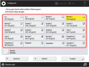 Configureu la pantalla que es mostrarà quan es carregui paper a la safata multiús, segons sigui necessari.