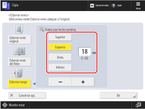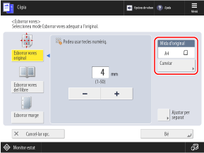 * Podeu esborrar les ombres d'un llibre només quan copieu les mides que es mostren a la pantalla de selecció de la mida de l'original.