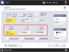Pot ser que la còpia de quaderns no estigui disponible amb algunes mides i tipus de paper. Si utilitzeu paper gruixut per a la portada, segons el gruix del paper, és possible que l'equip no faci la còpia a la portada fins i tot quan configureu les opcions perquè la hi faci.
