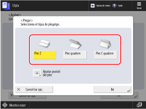 A continuació, apareixerà la pantalla [Plegar] o la pantalla [Plec quadern].