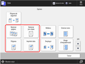 Afegeix números als conjunts de còpies (per indicar l'ordre dels conjunts de còpies) quan es fan còpies. Es poden utilitzar com a números de control per a cada conjunt de còpies.