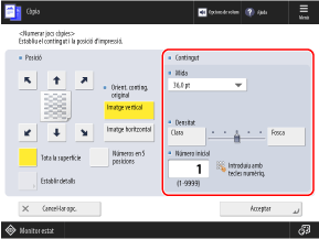 Si seleccioneu [Números en 5 posicions], els números del conjunt de còpies s'imprimeixen al centre del paper i a cada cantonada.