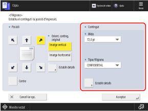 Podeu seleccionar [Person.] a [Tipus filigrana] per indicar una cadena personalitzada.