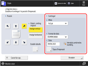 Afegeix la data (any, mes i dia) en fer còpies. Podeu indicar la data que voleu que s'imprimeixi.