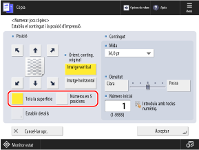 * No podeu seleccionar [Tota la superfície] i [Números en 5 posicions] si les opcions estan configurades per afegir una altra informació als números del conjunt de còpies.
